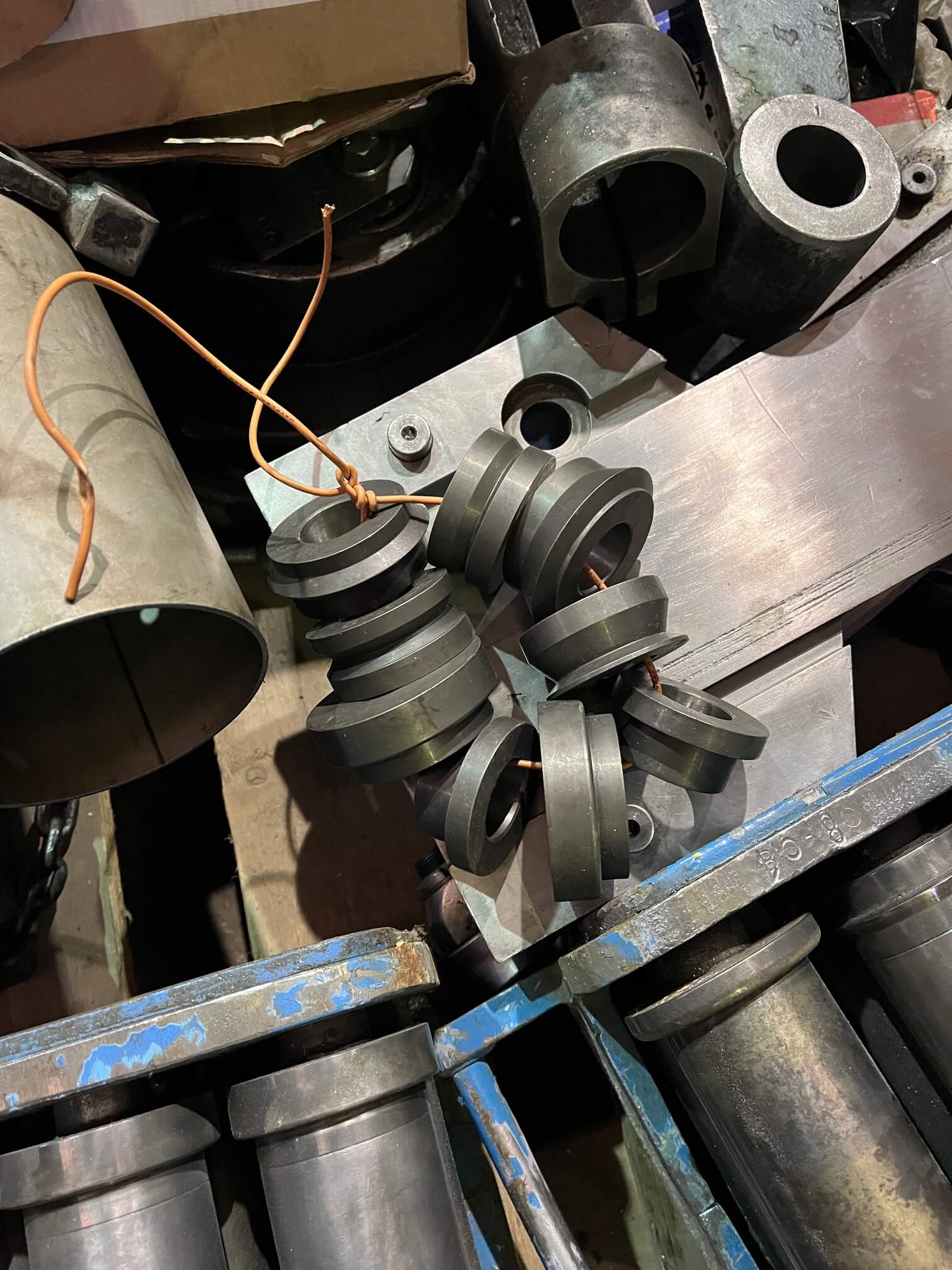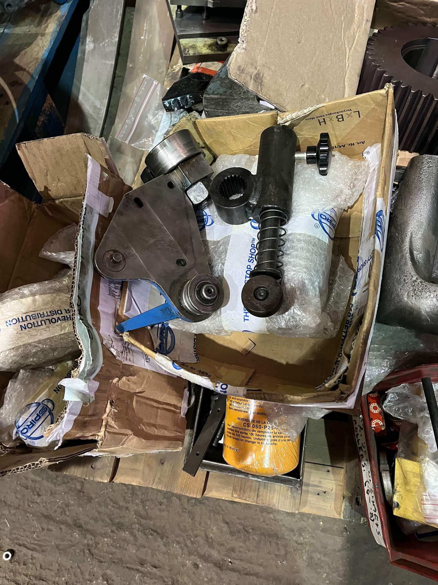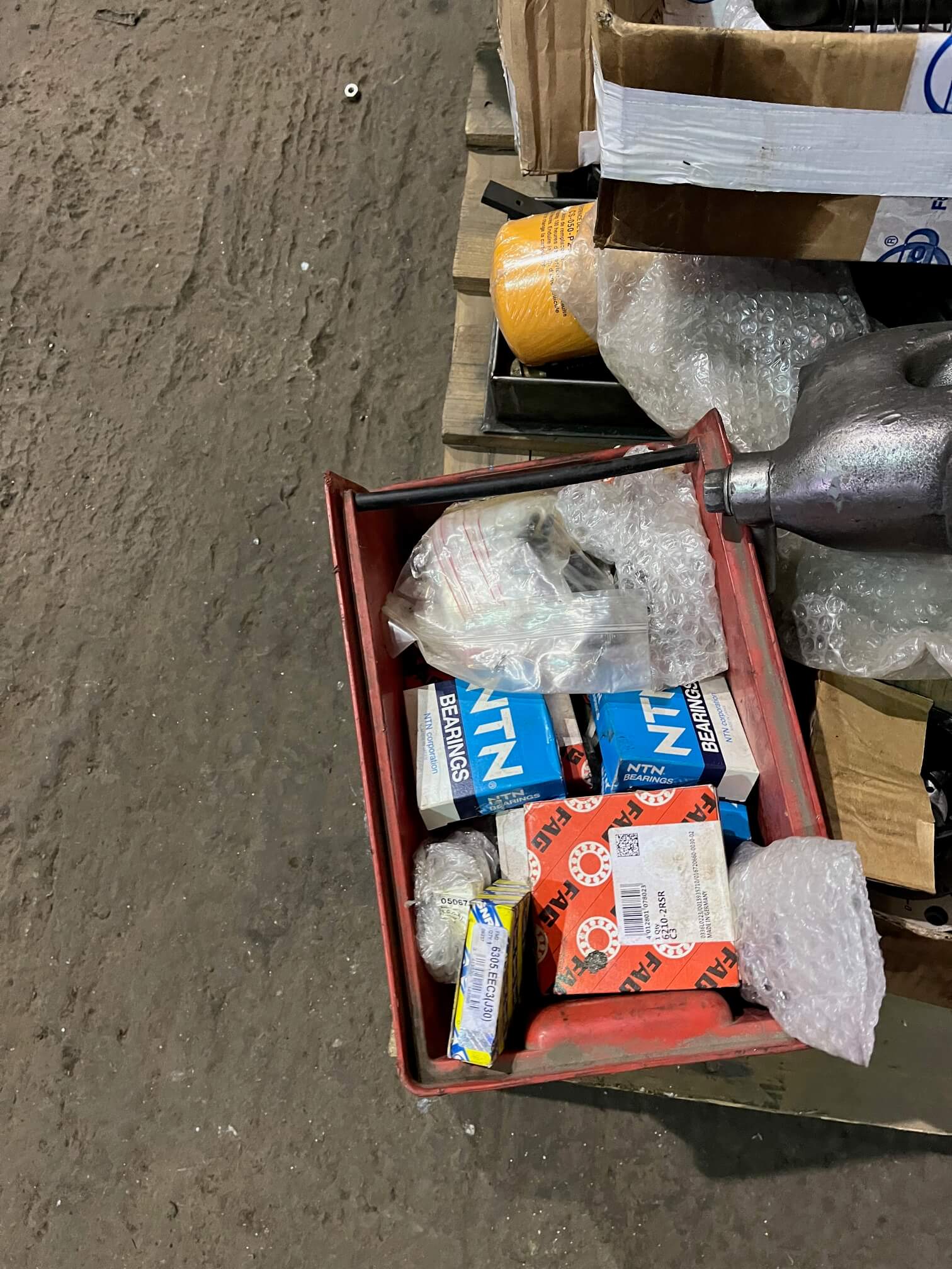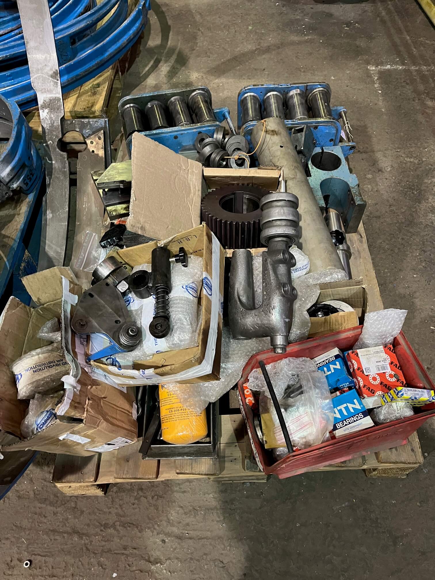 The machine also comes with a pallet of spare parts. Bearings, shafts,